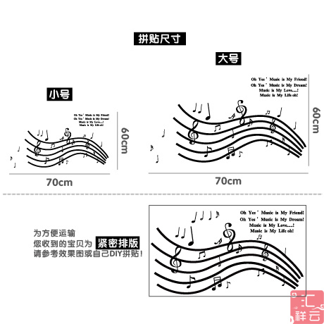 Five Lines Spectrum Coffee Shop Shop Window Decoration Stickers Piano Music Art Training Classroom Glass Door Wall Stickers