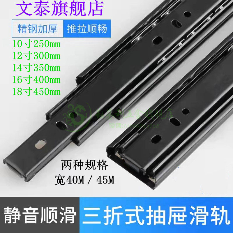 Conventional drawer track 1 2 thickness 45mm 10 - 18 inch high mute ball ball three - fold guide rail slide track