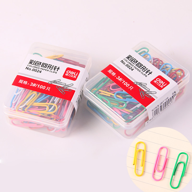 Deli paper clip 0024 Color creative cute paper clip 3#paper clip U-shaped needle 100 pieces box