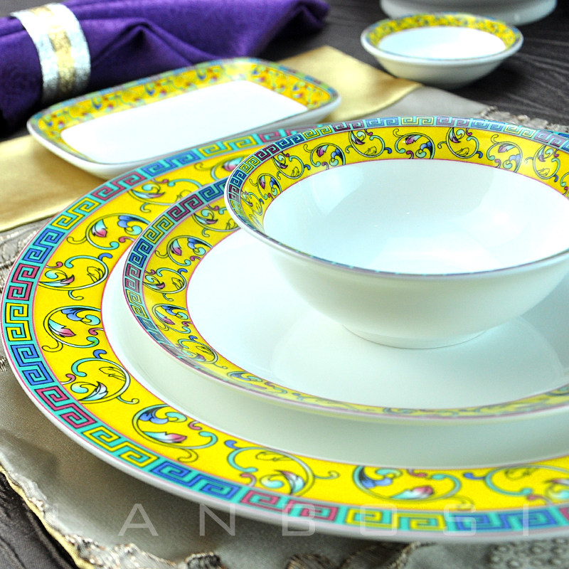 Luxury restaurant restaurant supplies hotel set table bone china set catering tableware hot pot four-piece set of dishes and spoons