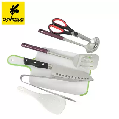 Outdoor camping portable wild tableware barbecue set kitchen knife cutting board scissors spoon rice spoon Baking clip seven-piece set