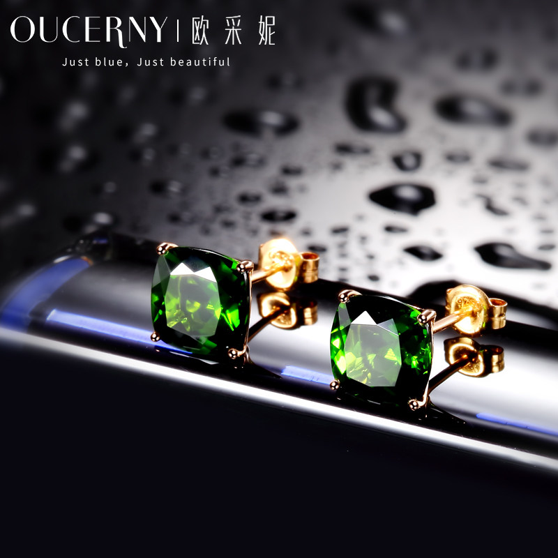 4-carat permeable stone ear needle 18K rose gold minimalist temperament niche design sense fashion fresh green anti-allergy