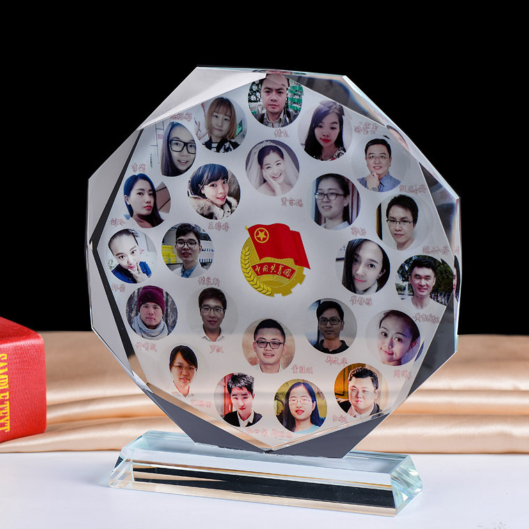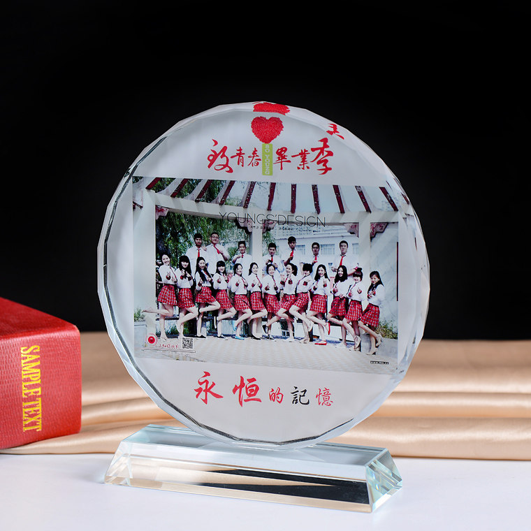 Custom-made trophy medal crystal photo veteran graduate student association souvenir crystal authorization plate metal trophy