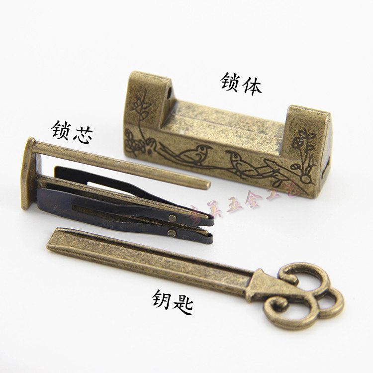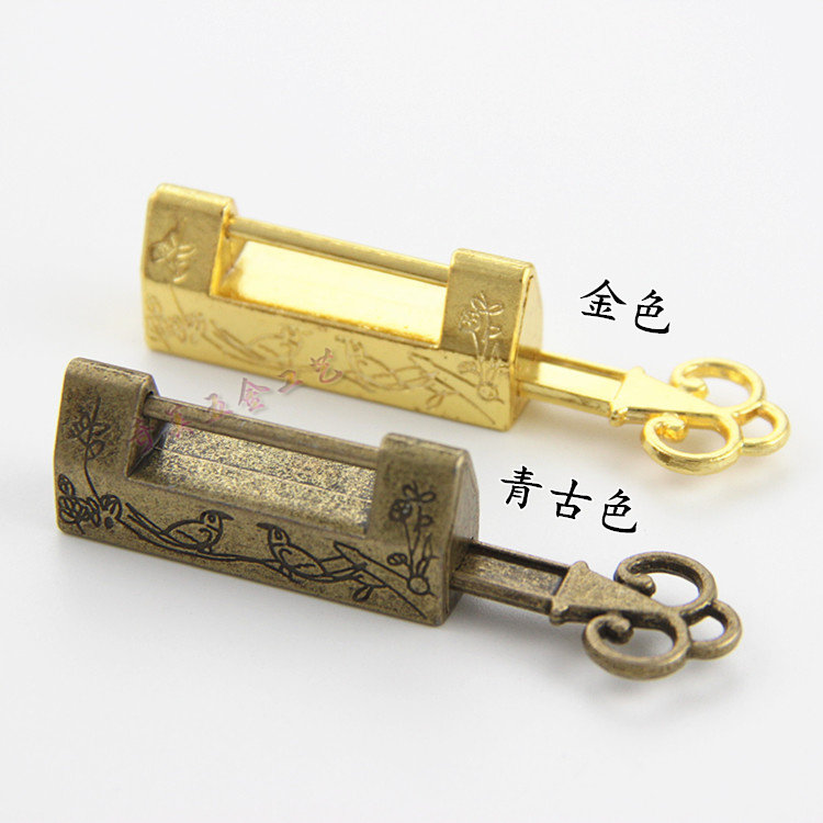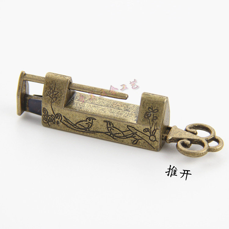 Antique lock ancient mini small key lock vintage box lock old fashioned old Chinese style first decorated case cross open padlock to open