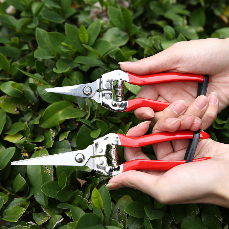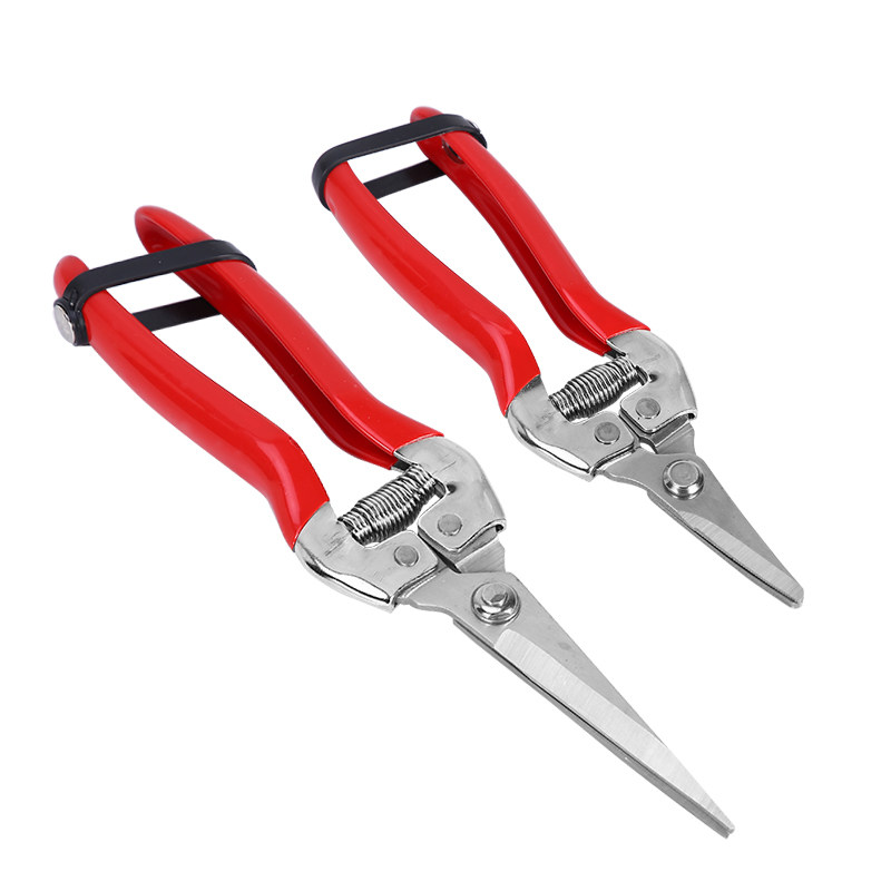 Red-handled fine-toothed short-raised head, short straight head, short-raised head, long straight head with teeth, chrome-plated short-raised head, short wide-headed fruit picking scissors polished long