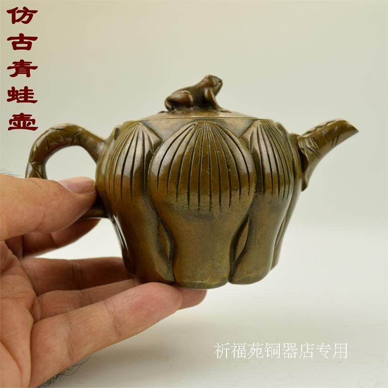 Pure Copper Pot Small bronze pot Peach Lid Pot Bamboo Bronze Pot Craft Gift Hem Decoration Pot Frog Lotus Pot Pure Copper Pendulum