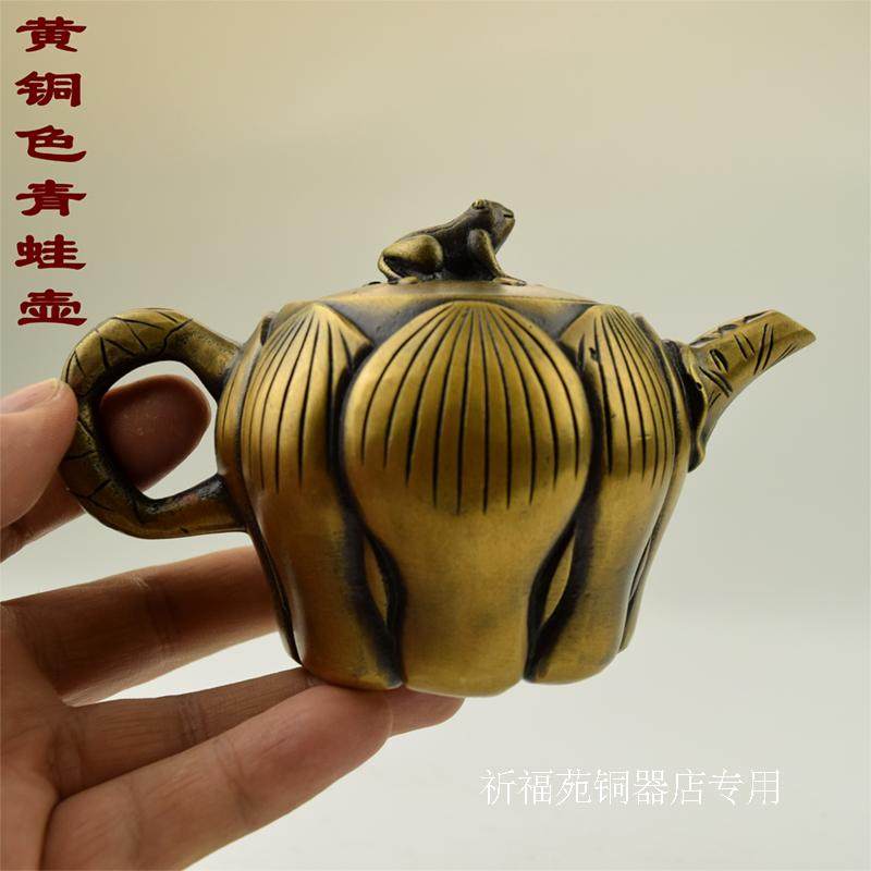 Yellow Little Peach Pot Imitation Ancient Peach Lid Pot Imitation Antique Color Frog Lid Pot Brass color frog lid pot