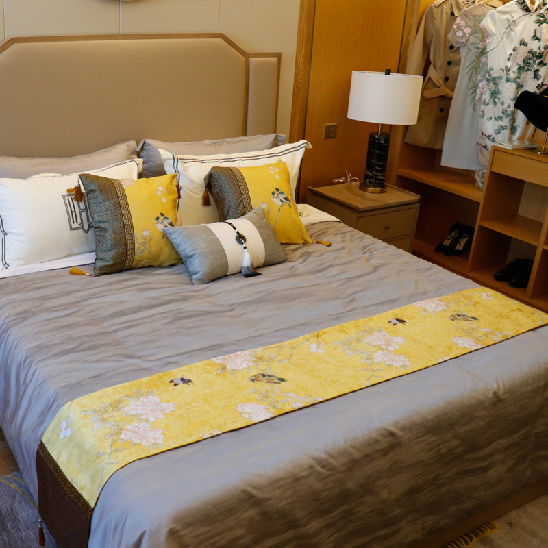 Beauty House Table Flag Chinese Style Zen Chinese Style China Wind Bed Flag Tea Table Flag Modern Upscale Yellow Flower Bird Tea Mat