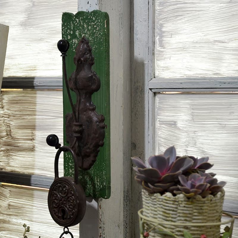 Solid wood hook European and American retro wrought iron wall decorations wall hanging hallway coat rack