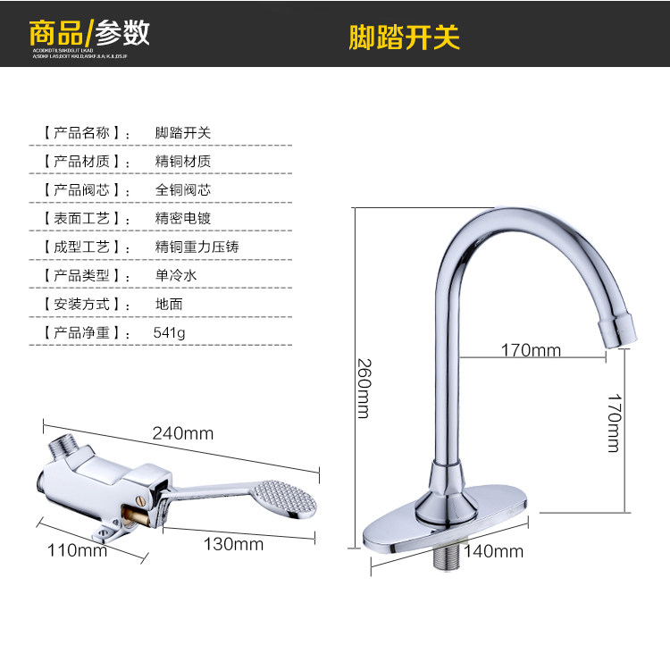 Hospital with foot-operated faucet foot valve faucet switch hospital laboratory faucet copper warranty for five years