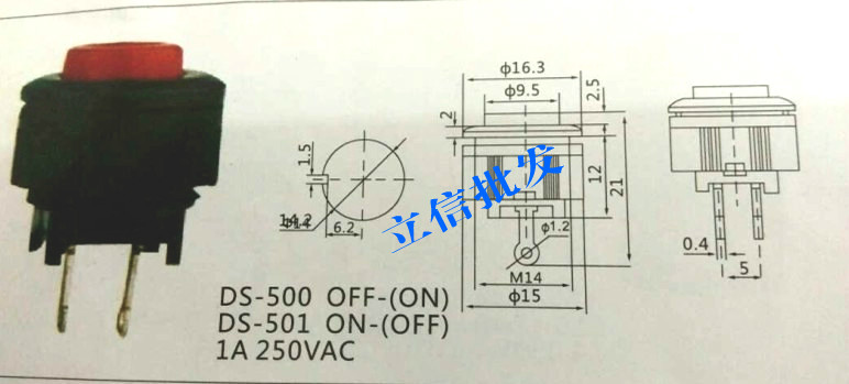 Power button switch DS-500DS-501 Sort by broken drilling 14MM No lock switch to fit waterproof cap
