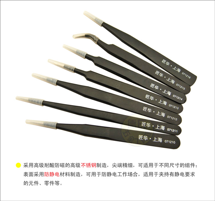 Artisan Tools Stainless Steel Antistatic Tweezers Special Tip Bending Mouth Round Head Flat Mouth Precision Electronic Tweezers