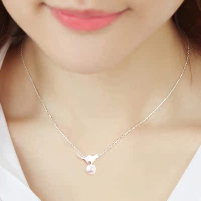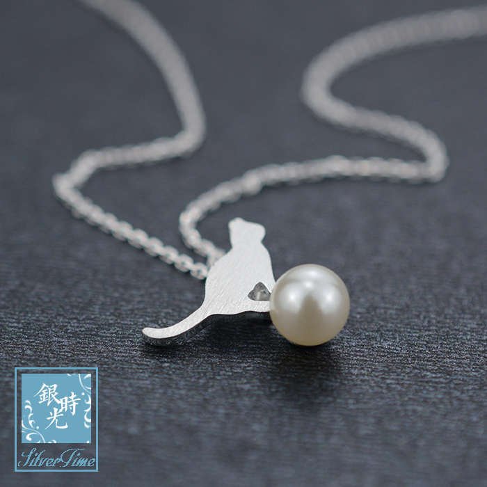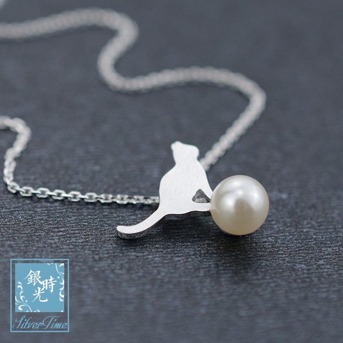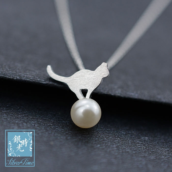 Silver Time S925 Pure Silver Necklace Drawing Kitten Ball Seal Pearl Pearl Pearl Pearl Pearl Ring Woman