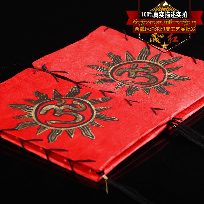 Tibet Six words true sun auspicious picture red Tibetan paper lantern (small number) handmade lamps in Nepal