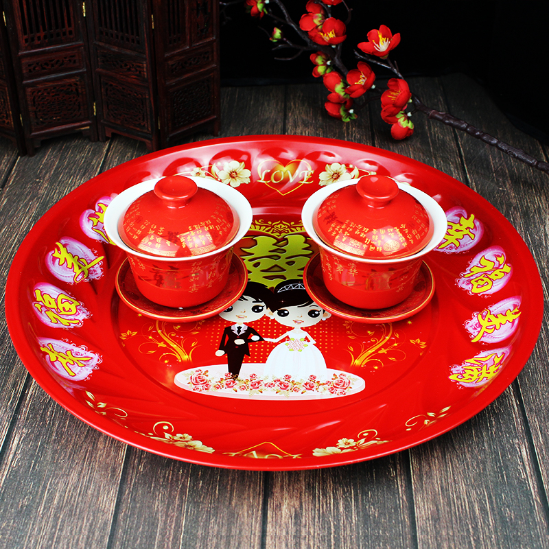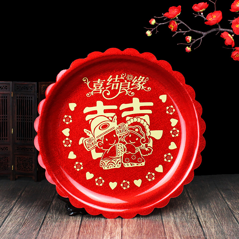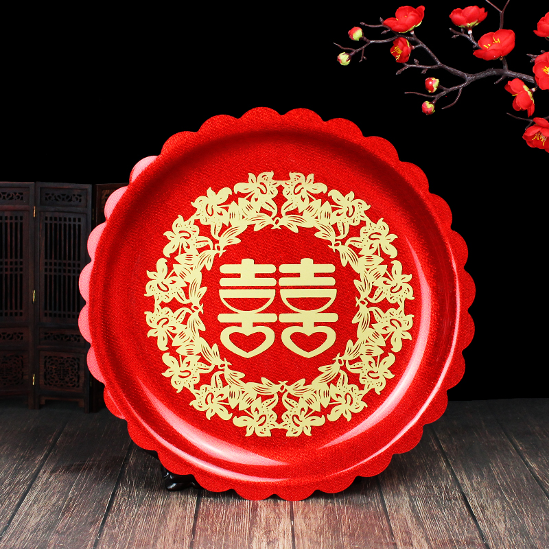 Silver light grey Mei red rice white large red Happy letdown in diameter 36cm Happy Happy Tray Diameter 36cm Wine Red tray diameter 36cm Double Heineken Mandarin Duck Big double Heayumanfang