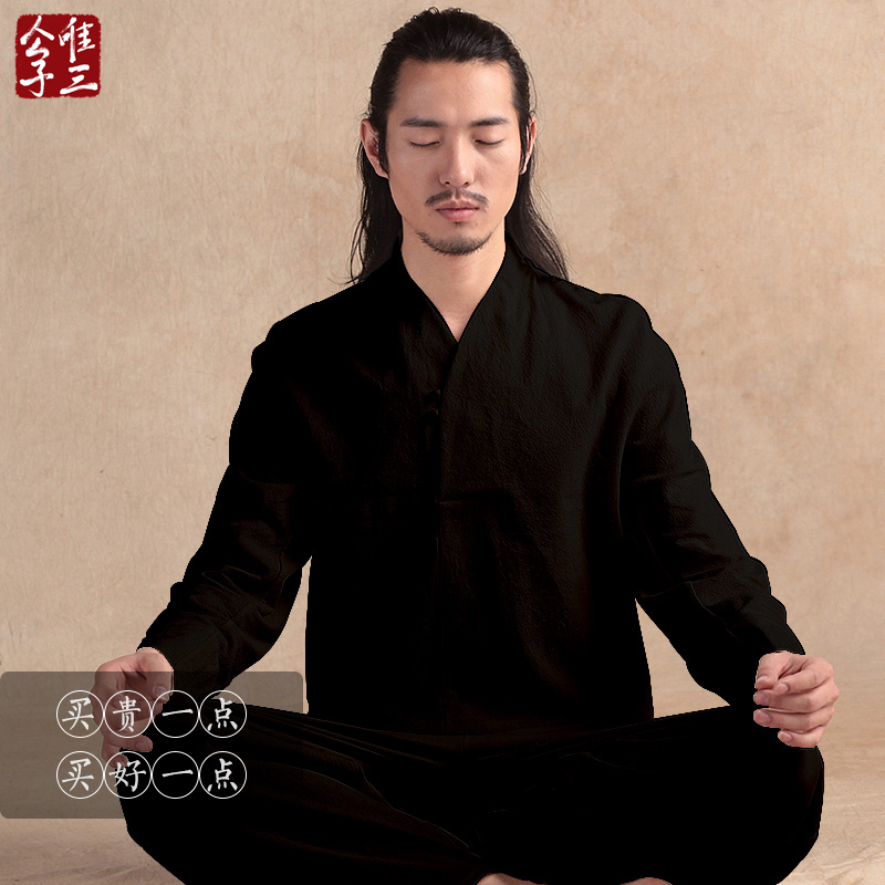 Only three bodhicitta heart meditation tea clothing male residences Chinese style shirt Buddha line Tang suit Chinese clothing men's ancient style fairy Autumn