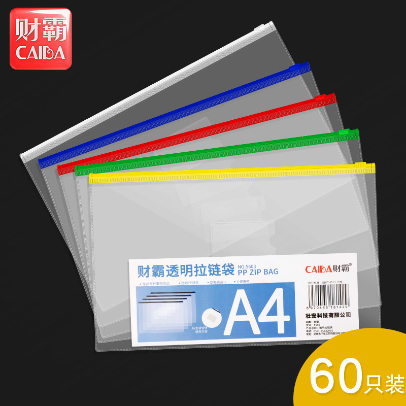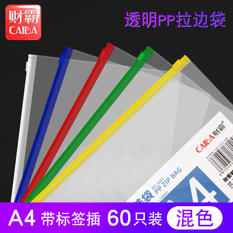 60 transparent document bag a4 zipper bag Large capacity a5 information bag a6 document bag Transparent plastic large pull edge bag Transparent file bag Folder storage bag Book bag Student paper bag