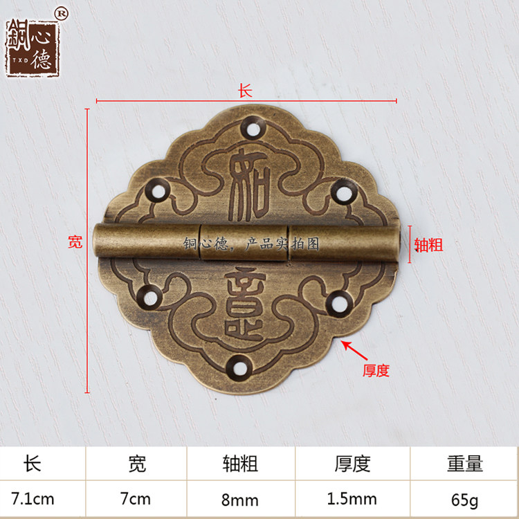 Chinese antique bronze hinges flat cabinet door hinges wooden door living leaf pure copper hinges folding door lotus leaf hardware accessories