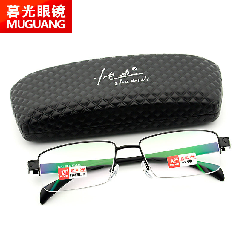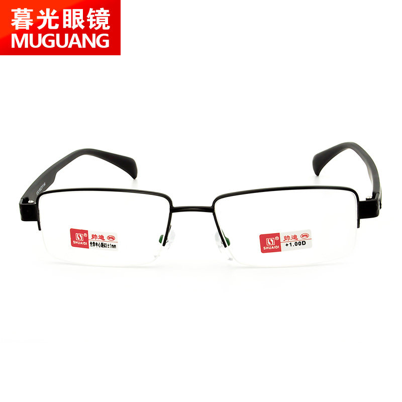 Handsome half-frame reading glasses Men's and women's fashion men's black vintage glasses TR90 matte temples