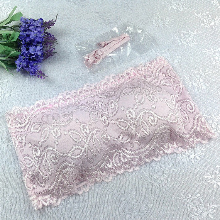 Anti-light base wrapped breast lace bandeau Korean version of solid color wild bandeau underwear with transparent shoulder strap breast pad