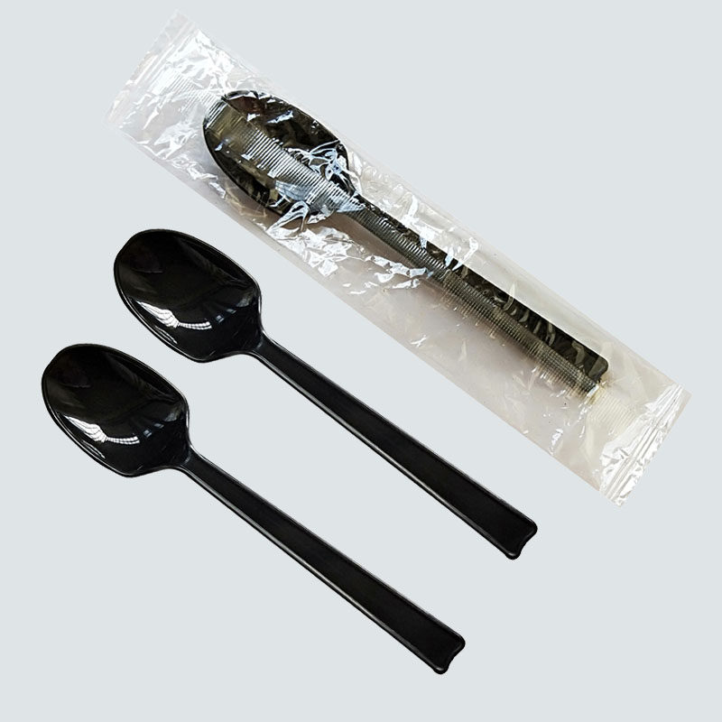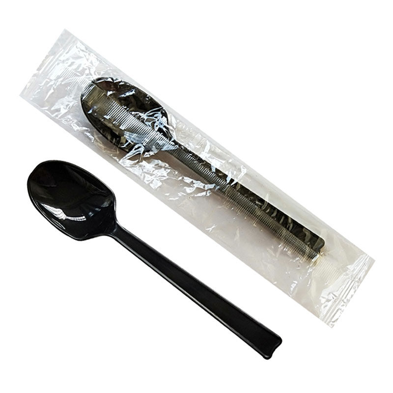 Thickened Black Independent Packaging Soup Spoon Disposable Spoon Dining Spoon West Dining Spoon 16CM Long Handle Fried Rice Spoon 500