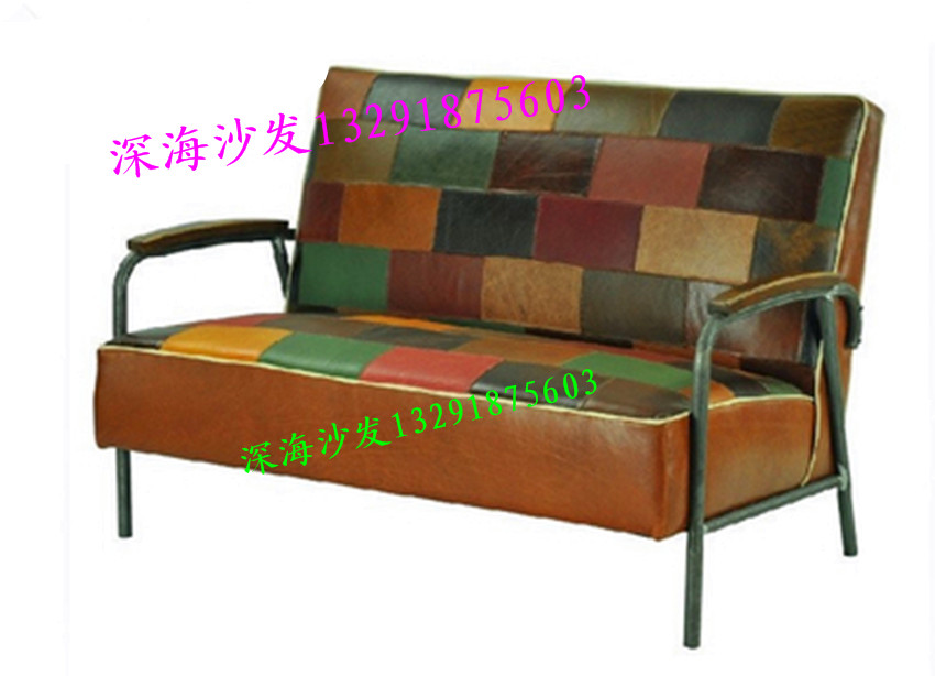 Shanghai style old Shanghai wrought iron leather retro chair cafe personality leather sofa modern era old double chair