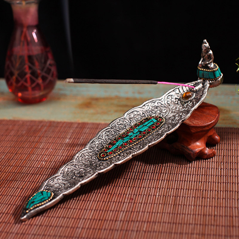 Lotus fragrant plate (elephant-nose chaeses) Tibetan silver incense furniture (Sakyamuni Buddha) alloy incense plate (elephant-nose chaeses) green fragrant plates (elephant) alloy fragrant plates (elephant-nose chaeses) dark blue alloy