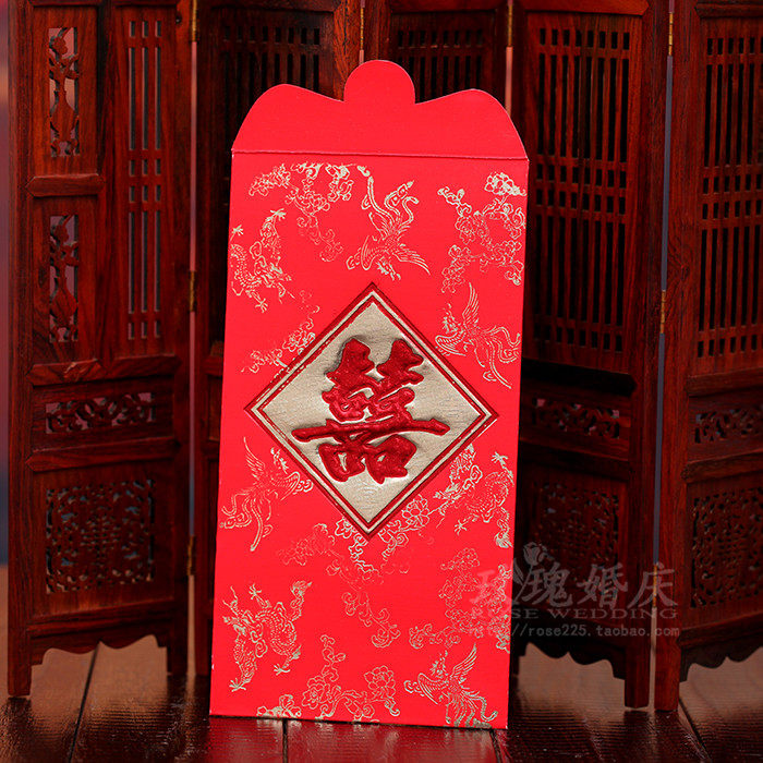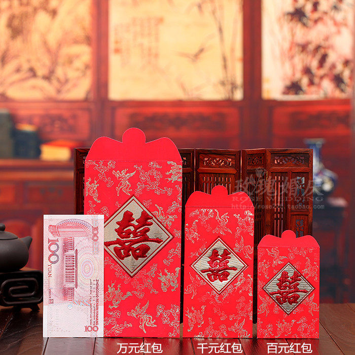 Wedding festive supplies, wedding bronzing, dragon and phoenix, high-grade cardboard, 10,000 yuan red envelope bag, 6 pieces