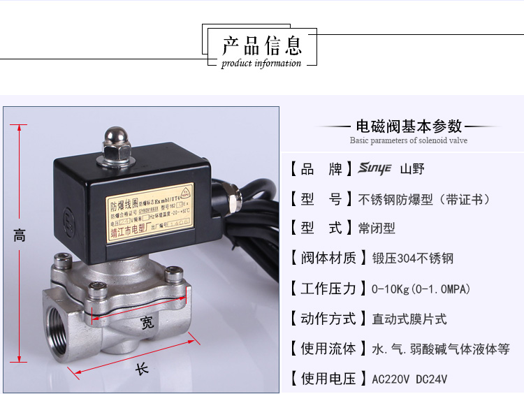 304 stainless steel explosion-proof solenoid valve water valve AC220VDC24V3 divisions 6 minutes 1 inch 1 inch 1 inch and certificate