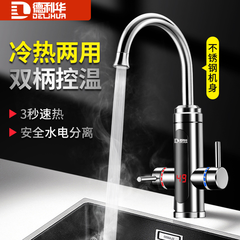 Delihua instantaneous electric heating tap double handle stainless steel heater kitchen speed hot and cold dual-use water heater
