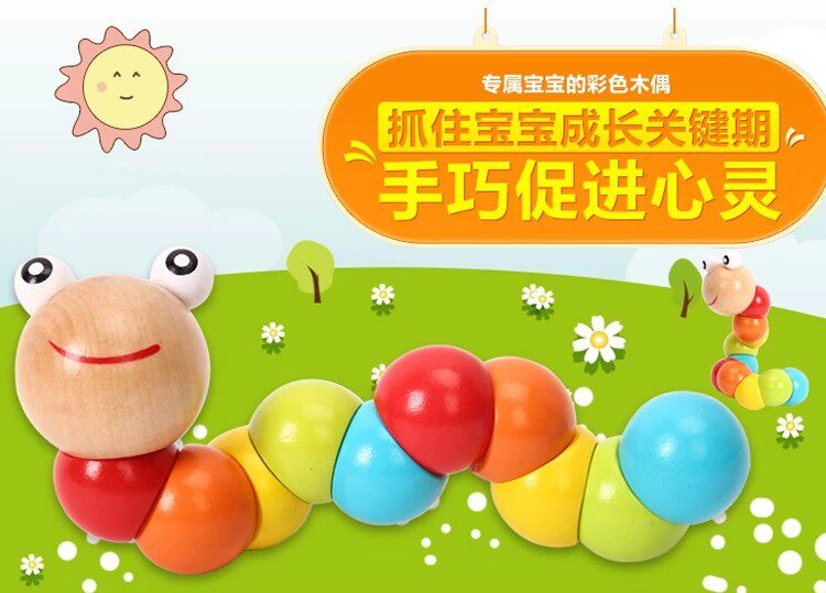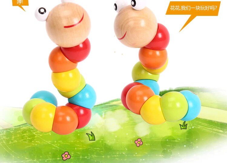 Wooden Puzzle Toy 100 Variable Color Kinks Wool Caterpillar Toddler Toddler Toddler Exercises Finger Toys
