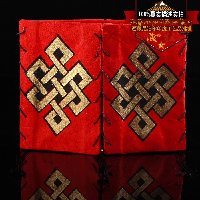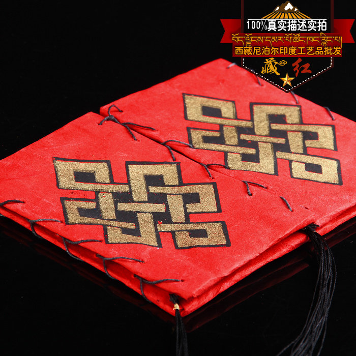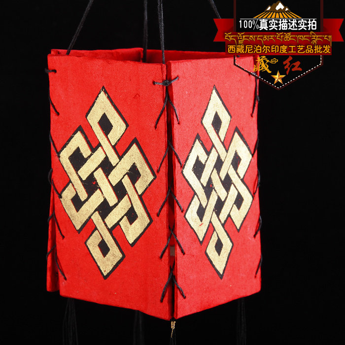 Tibetan Tibetan Auspicious Knot Handmade Red Tibetan Paper Lantern (Trumpet) Inn Clubhouse Hand-painted Lampshade