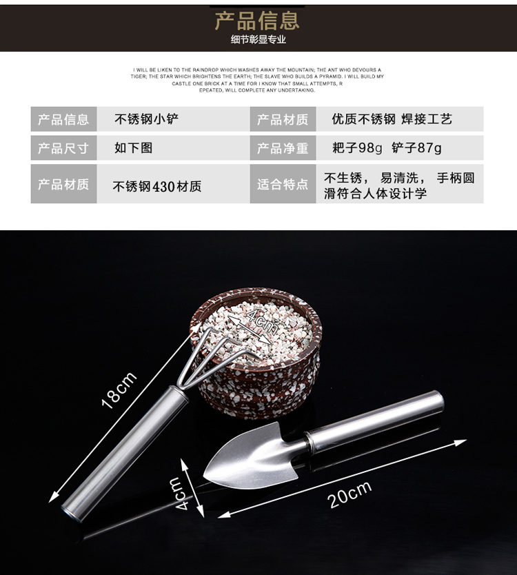 Succulent gardening garden tools, stainless steel small shovel, flower shovel, small shovel, shovel, shovel, outdoor flower cultivation, flower planting household