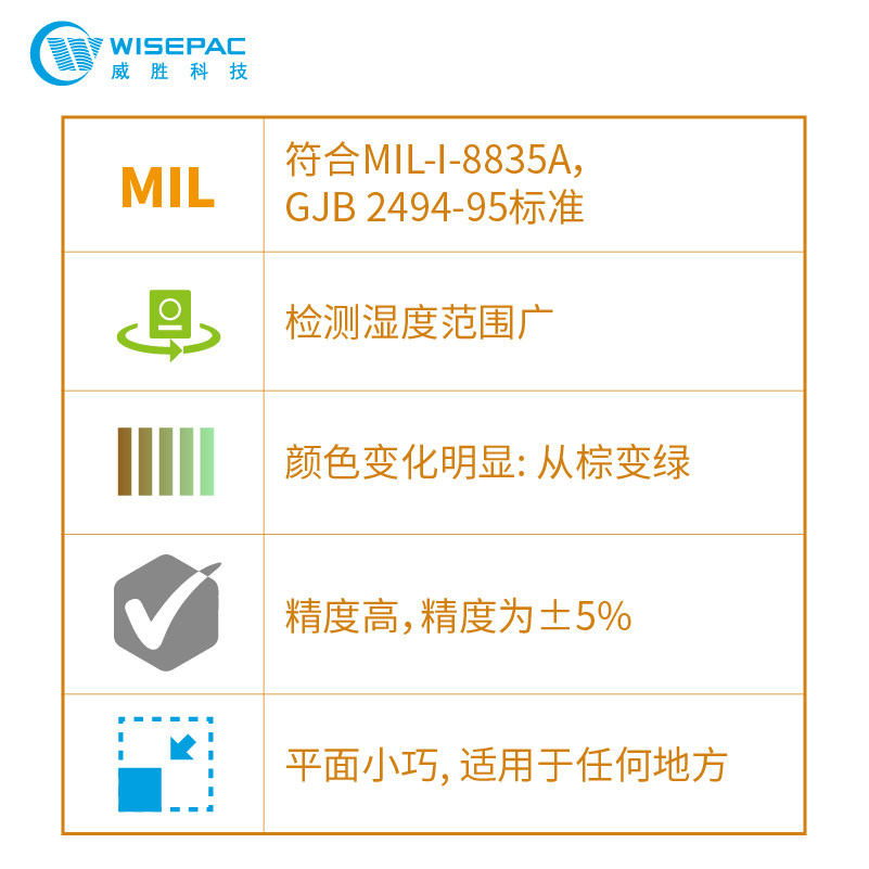 WISEHIC-4 Series 6 point 10-60% brown to turquoise humidity indicator card 200 pieces