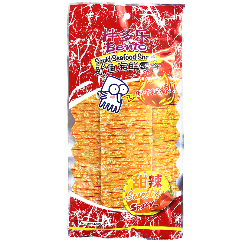 Thailand imported BENTO shredded squid slices sweet and spicy flavor 20g red bag mixed with Dole Thai dried squid spicy snacks