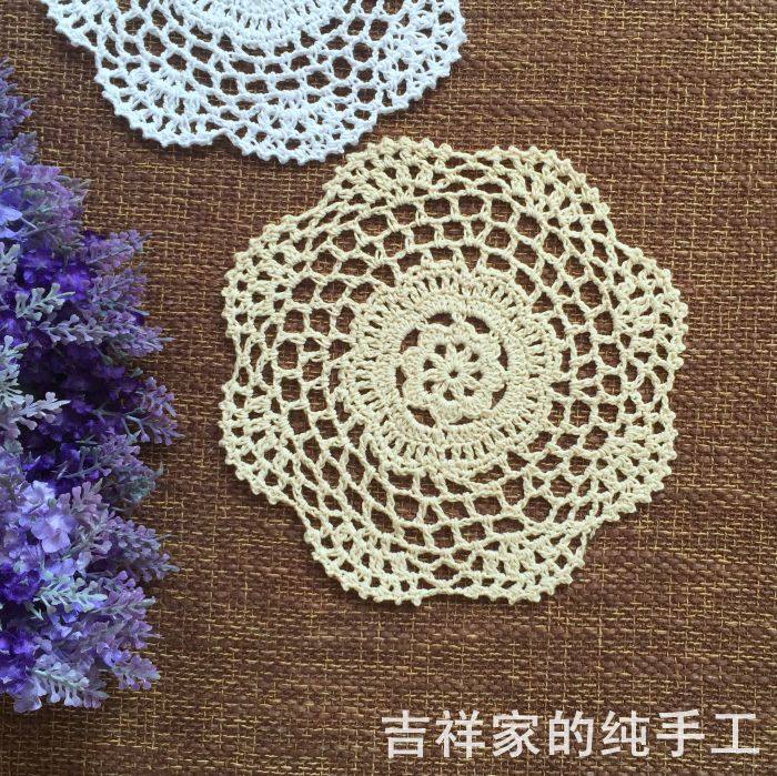 Auspicious Handmade Pure Cotton Crochet Hook Flower cup cushion Z Wind Retro Hollowed-out department shooting props 20CM meters white