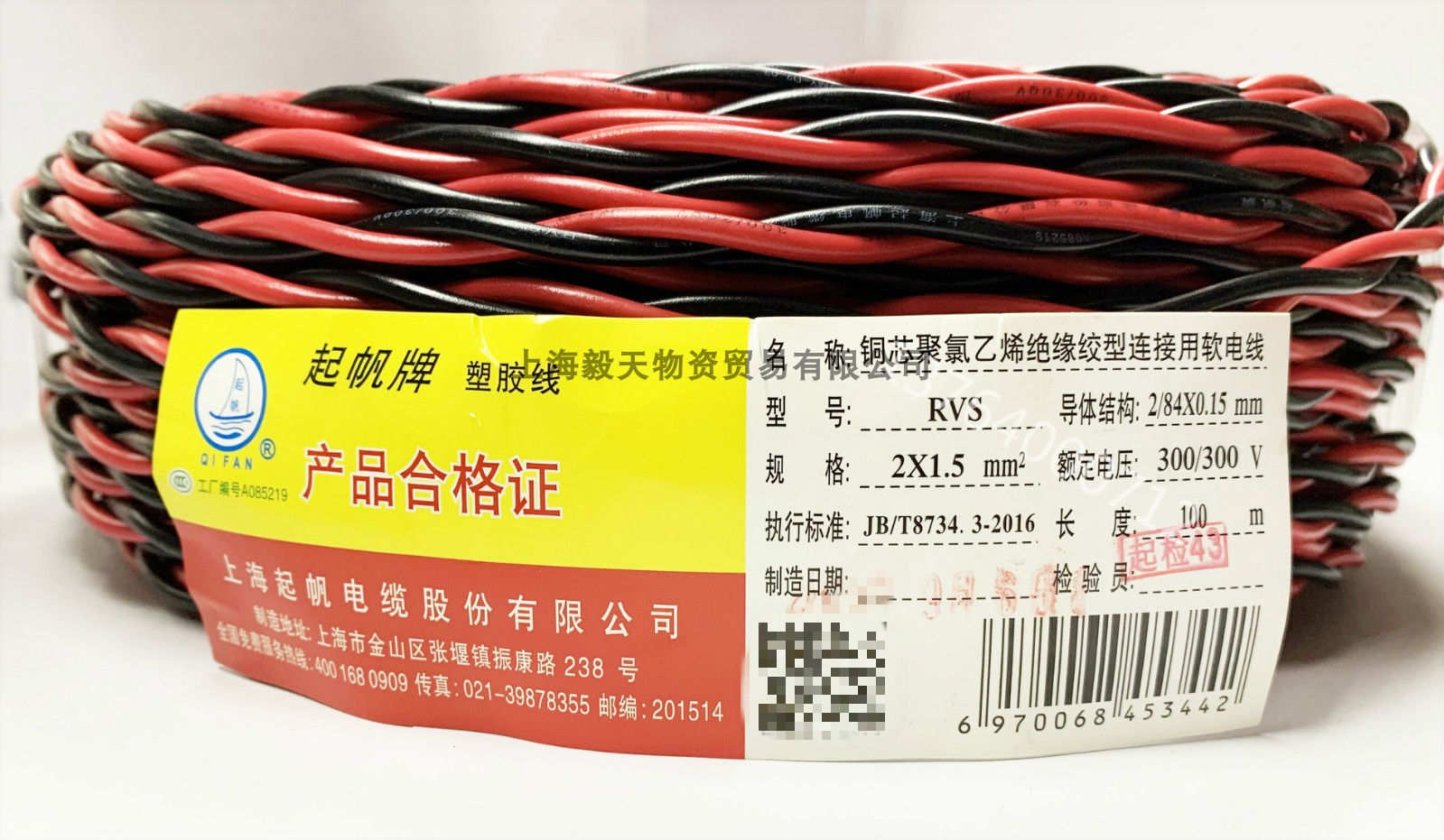 Sail wire RVS2*1 5 square red and black twisted pair copper core soft wire home decoration lamp flower wire foot meter national standard