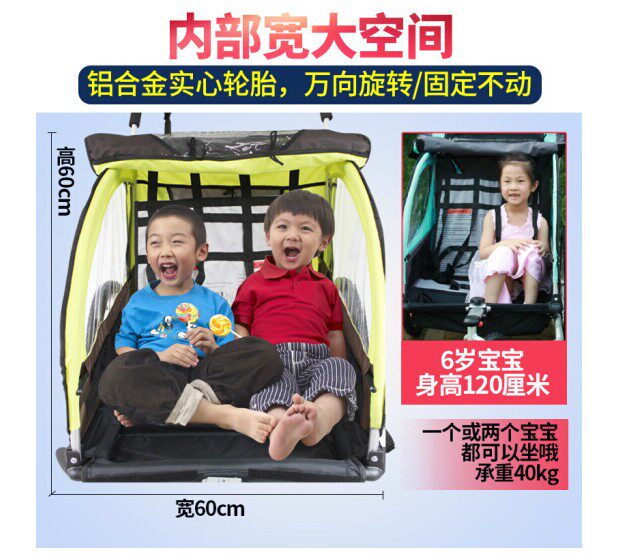 Double Seat Push Trailer Aluminum Alloy Bicycle Trailer Child Trailer Bicycle Baby Stroller Trailer Folding
