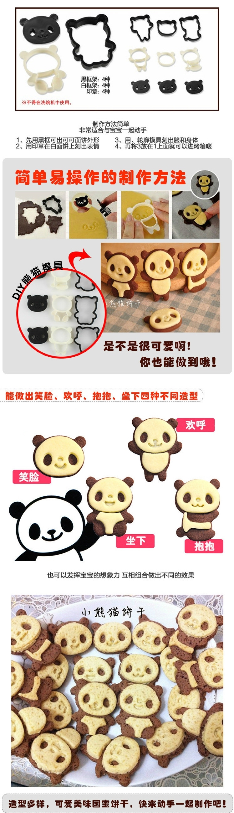 4pcs DIY Creative Eco-Friendly Panda Cookie Mould Set Cartoon Chocolate Baking Tool Pastry