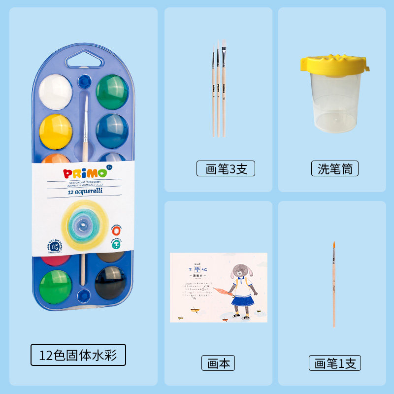 primo Children's painting painting coloring pigment Safe washable baby doodle pigment Solid watercolor blowing painting set