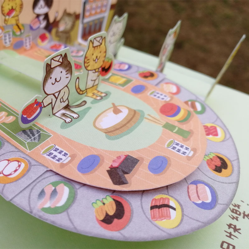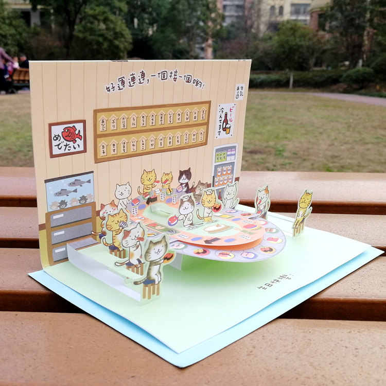 Taiwan ins Qianxi same paragraph birthday greeting card Christmas party commemorative cat revolving sushi three-dimensional greeting card