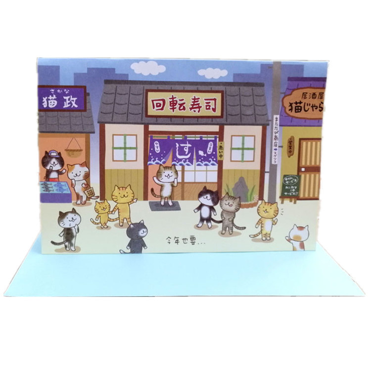 Cat Conveyor Sushi 3-D Card Send Envelope for Cat Maid Café Send Envelope for Cat Drinking Tea 3-D Card Send Envelope for Cat Karaoke Birthday Card Send Envelope for Cat Amusement Hall 3-D Card