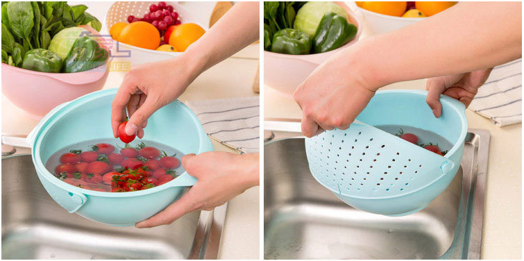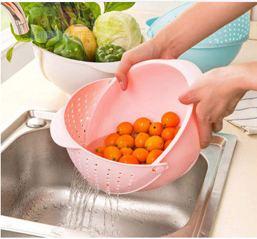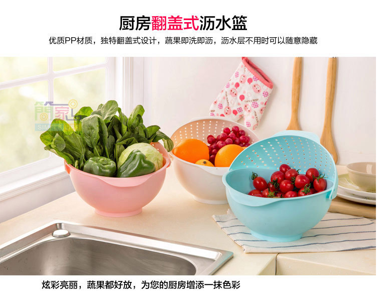 Amoy rice basket Pink small Amoy rice basket Pink large with telescopic vegetable washing blue blue large with telescopic vegetable washing basket Pink large multi-function basket double-layer basket