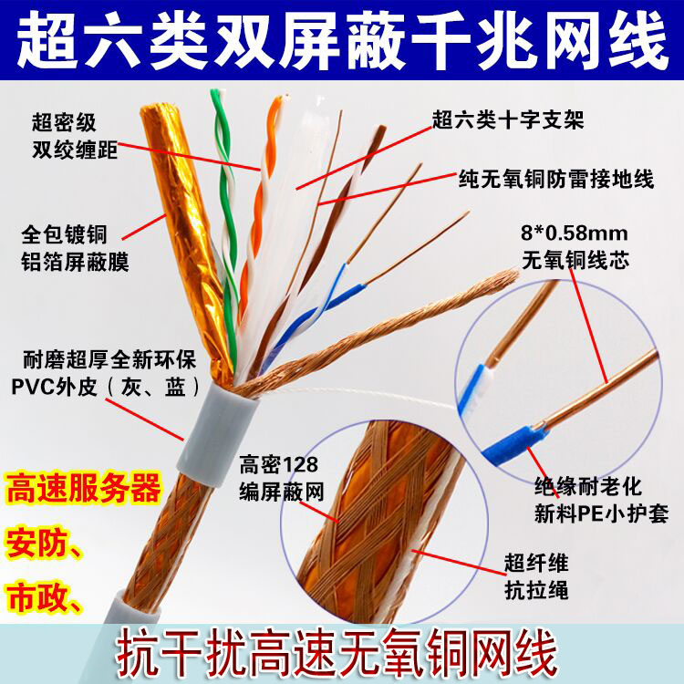 Super-six-type double screens 0-58 oxygen-free copper-grey super-six-type double screen 0-58 oxygen-free copper-blue ultra-six-class 0-58 oxygen-free copper outdoor water-blocking line-black supersix-type double screen blinding 0