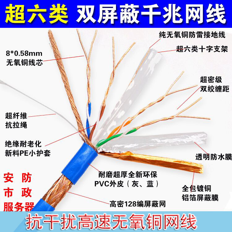 Amp Super Six Categories Twin-screen Route Putian 8 Core 0-58 Oxygen-free Copper one thousand trillion twisted pair