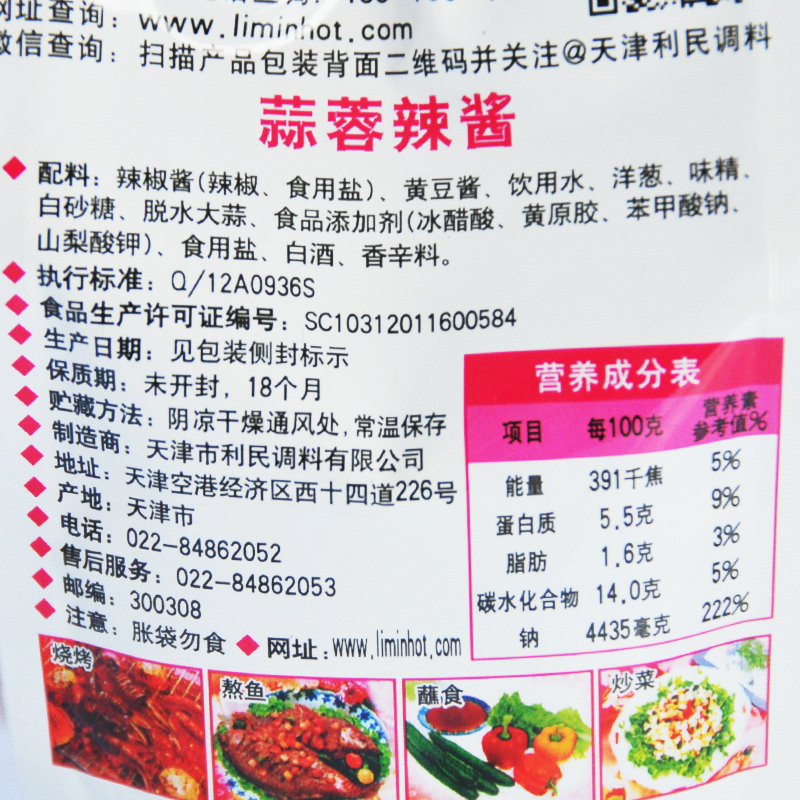 Tianjin Limin garlic chili sauce garlic chili sauce 450g bag barbecue sauce noodles garlic sauce sauce sauce