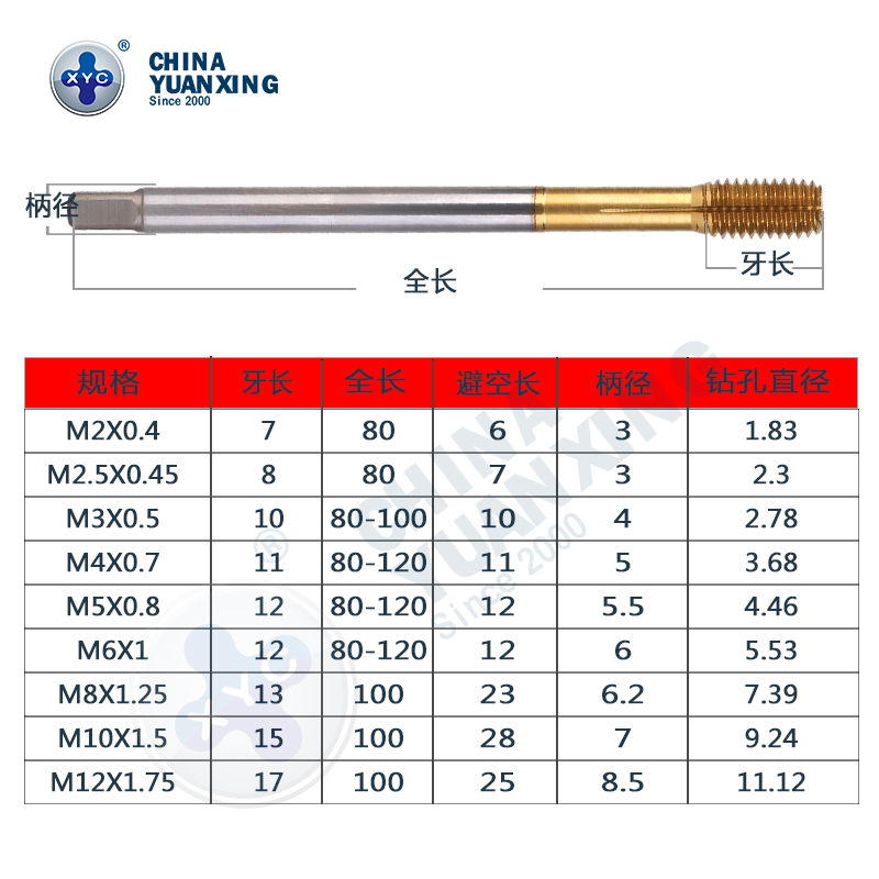 XYC titanium plated extended extrusion screw tapping L-TiN chipless tapping processing steel parts recommended powder high-speed mesh 100M