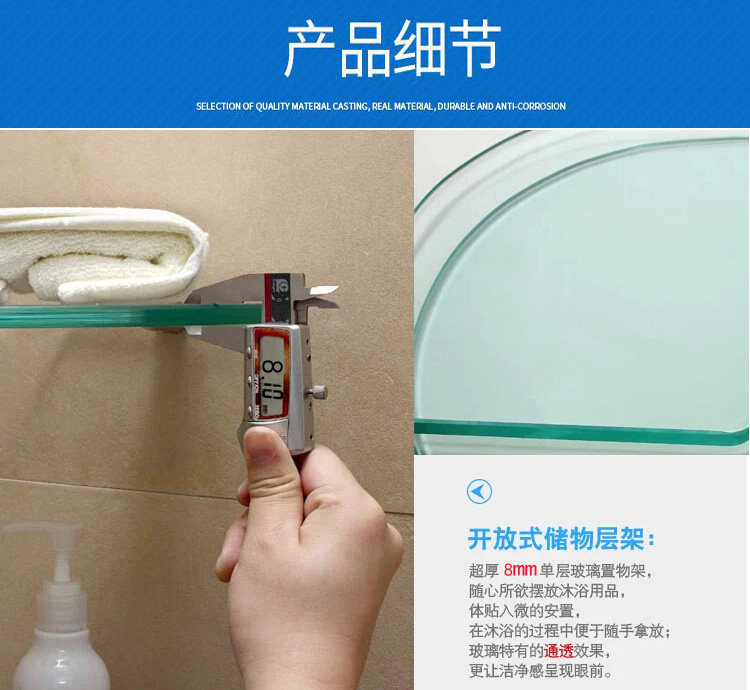 Shower room 8mm tempered glass shelves Shelf Bathroom Bath for Bath Accessories MAKEUP ROOM CORNER LAMINATE