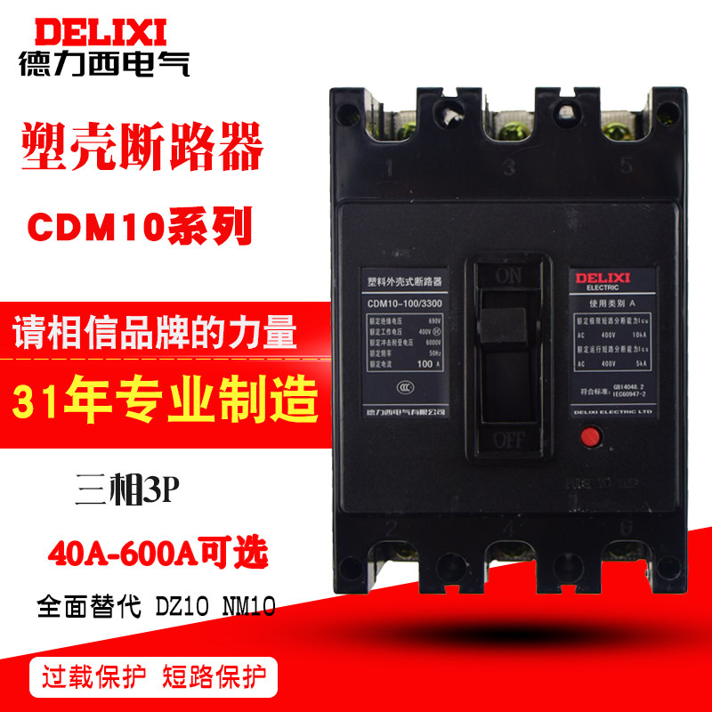 Delixi plastic shell circuit breaker CDM10-100A 250A 600A air switch NM10 DZ10 air-opened