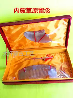 Horn comb gift box Mongolian Horn three-piece set grassland specialty tourist souvenir horn comb batch hair